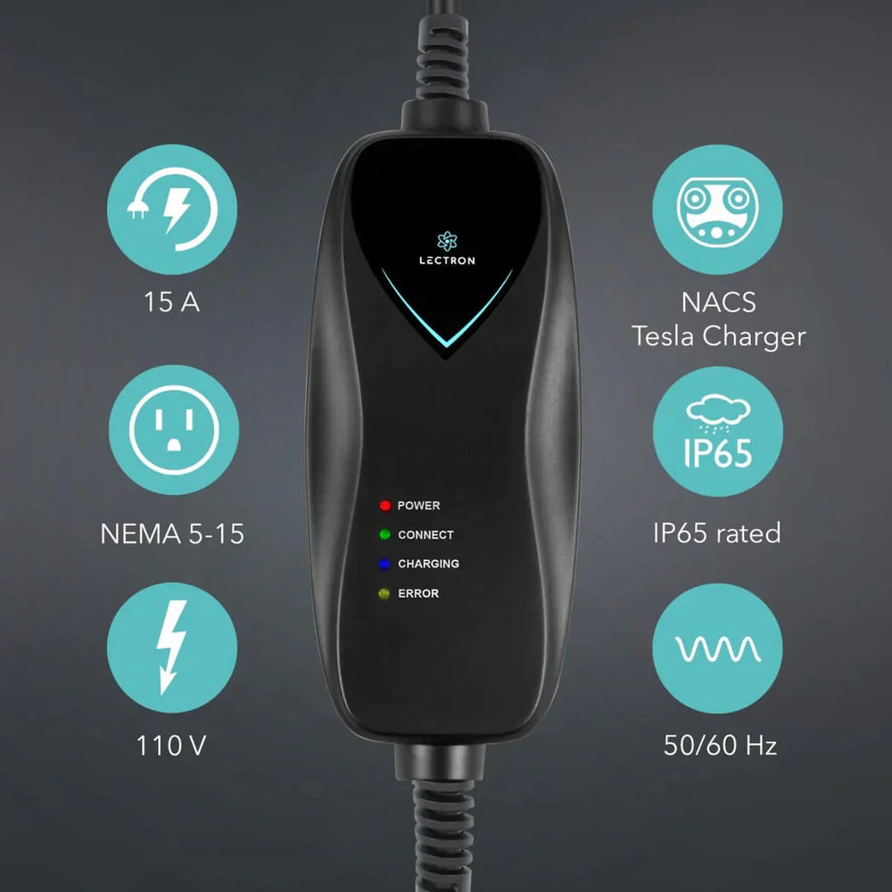 • Most Affordable Tesla Charger - The only native and most affordable Level 1 Tesla Charger to conveniently charge your Tesla or NACS EVs using any standard 110V or 120V outlet.